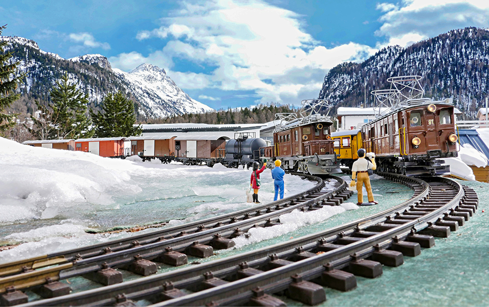 Nur unweit vom Bahnhof Pontresina befindet sich die Gartenbahn von Werner «Wohli» Wohlwend. Was liegt also näher, als Vorbild und Modell miteinander zu kombinieren? LOKI-Autor Peter Pfeiffer über die grosse und die kleine Berninabahn.